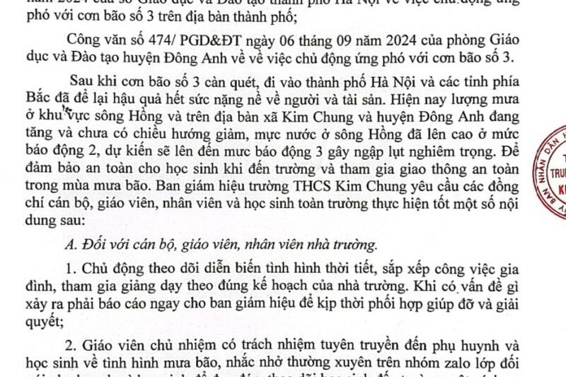 TRƯỜNG THCS KIM CHUNG [𝑻𝒂̆𝒏𝒈 𝒄𝒖̛𝒐̛̀𝒏𝒈 𝒑𝒉𝒐̂́𝒊 𝒉𝒐̛̣𝒑 đ𝒂̉𝒎 𝒃𝒂̉𝒐 𝒂𝒏 𝒕𝒐𝒂̀𝒏 𝒄𝒉𝒐 𝒉𝒐̣𝒄 𝒔𝒊𝒏𝒉 𝒕𝒓𝒐𝒏𝒈 𝒎𝒖̀𝒂 𝒎𝒖̛𝒂 𝒃𝒂̃𝒐] 💦💨🌬️🌪️Sau khi cơn bão số 3 càn quét, đi vào thành phố Hà Nội và các tỉnh phía Bắc đã để lại hậu quả hết sức nặng nề về người và tài sản. Hiện ...
